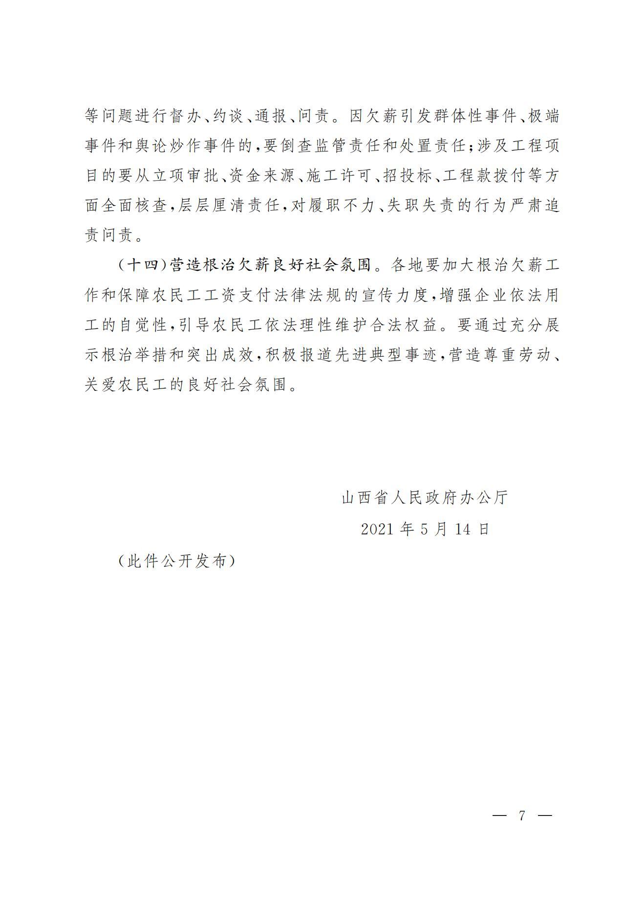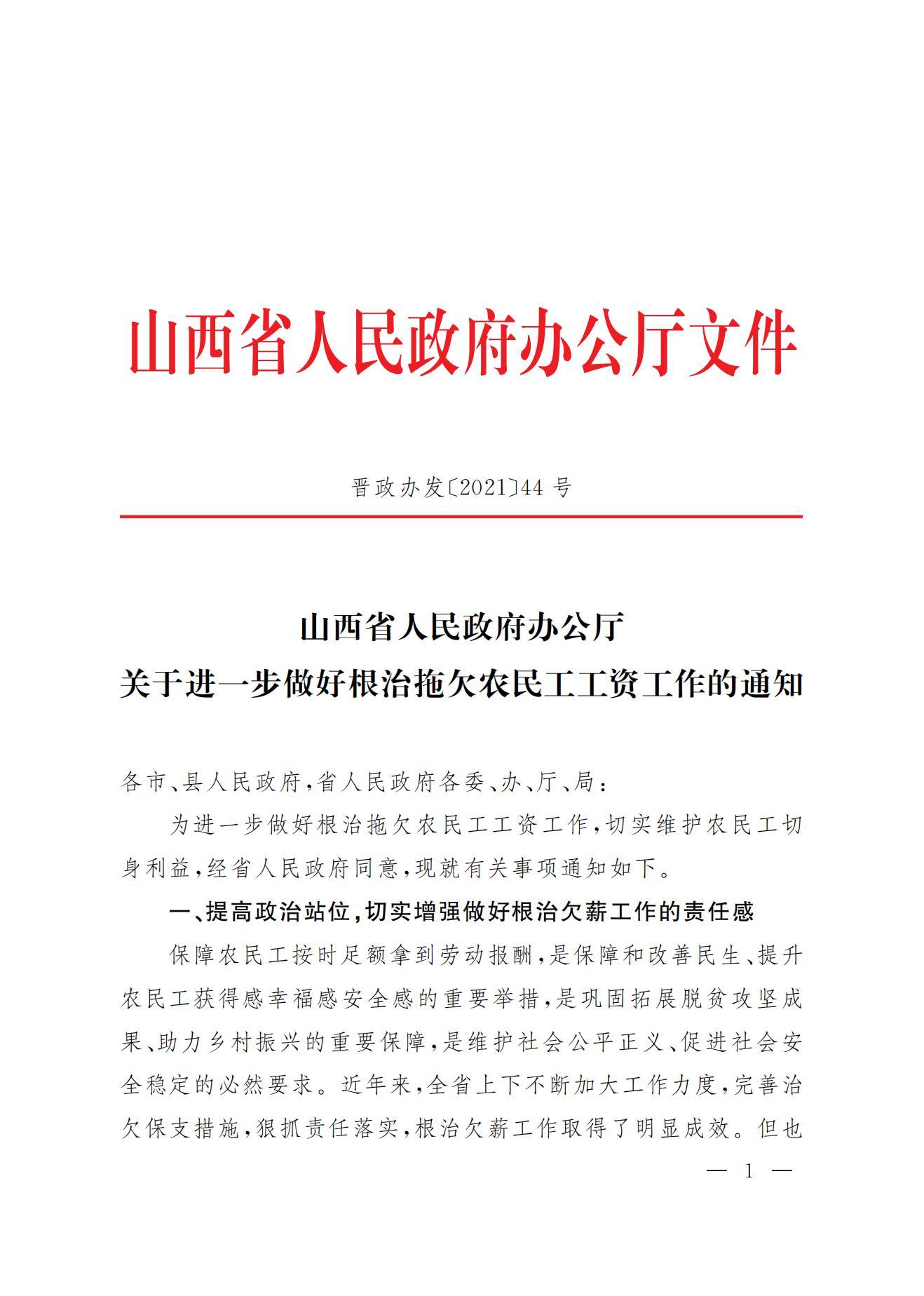 山西省人民政府办公厅关于进一步做好根治拖欠农民工工资工作的通知