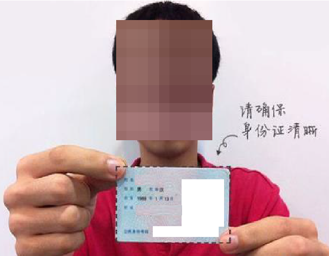(二)应试人员手持身份证照相的照片: