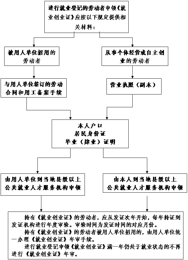进行就业登记的劳动者申领《就业创业证》 流程图